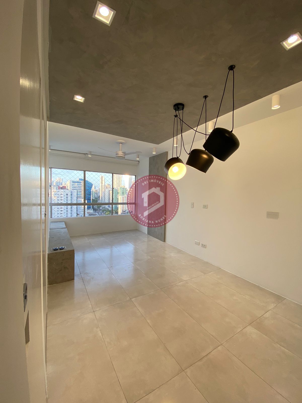 Apto de 1 quarto (podendo reverter para 2), suíte, sala para 2 ambientes, pronto para instalação de comando de voz, fechadura eletrônica, equipado com ventiladores de teto, armários na cozinha, área de serviço, banheiro e lavabo.
